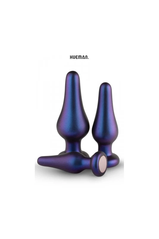 Box de 3 plugs anaux haute qualité de tailles différentes (10 à 13 cm de long), en silicone et ABS.