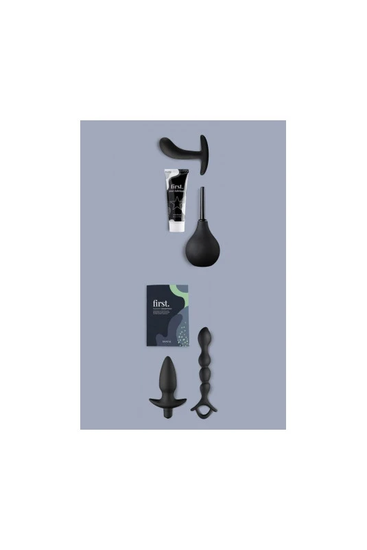 Coffret découverte du plaisir anal pour hommes et femmes avec 4 sextoys + 1 lubrifiant anal + 1 guide.