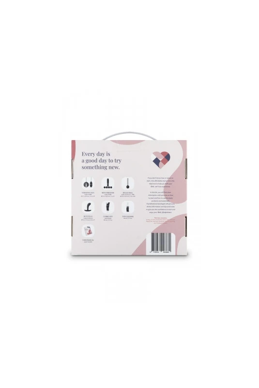 Coffret contenant 4 sextoys, 1 lubrifiant, 1 toy cleaner et 1 guide, pour s’initier Ă de nouvelles manières de se faire du bien.
