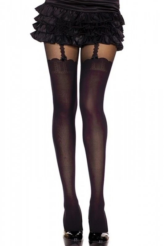 Collant Nylon Fantaisie Opaque Noir Style Bas Jarretelles