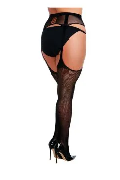Collant Résille Réversible 2 en 1 Grande Taille Effet Porte Jarretelles