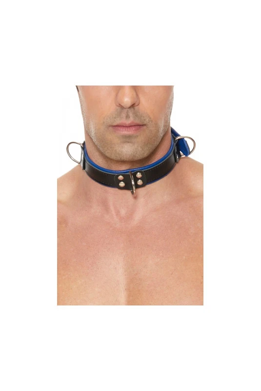 Collier Bondage Deluxe 3 Anneaux Bleu et Noir