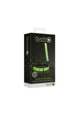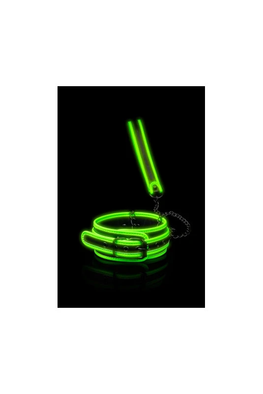 Collier BDSM et sa laisse assortie « Glow In The Dark » / brillant dans le noir, pour contrĂ´ler votre soumis(e) mĂŞme dans l’obscuritĂ©.