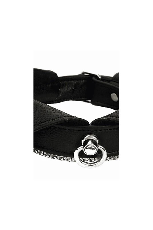 Un luxueux collier de soumission et domination avec un effet col et orné de cristaux Swarovski.