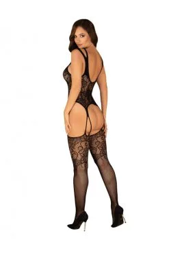 Combi Bodystocking Fleurie Effet Body Noir