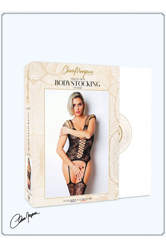 Combi BodyStocking Résille Florale Effet Guêpière Bas