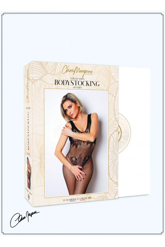 Combi BodyStocking Résille Motifs Fleurs Ouverte