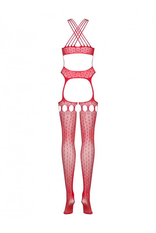 Combinaison Bodystocking Jarretelles Ovales Rouge