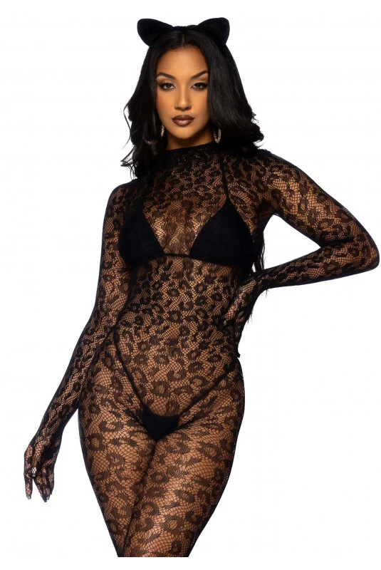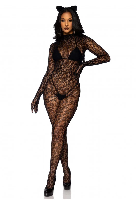 Combinaison Gantée Résille Léopard.