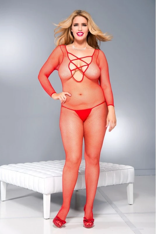 Combinaison Grande Taille Rouge Manches Longues Ouverte