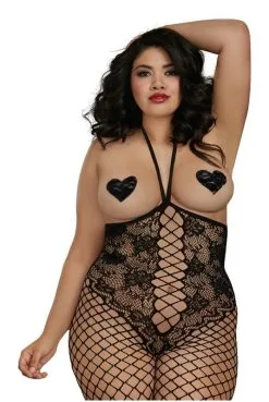 Combinaison Grande Taille Seins Nus Style Body Dentelle Jambes Larges Résilles