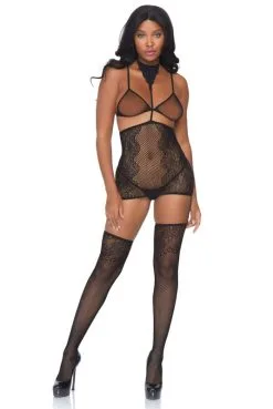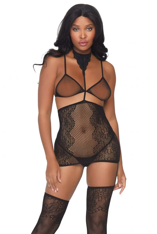 Body String Rouge Echancré Dentelle Et Sa Jupe Maille Transparente Amovible Grande Taille