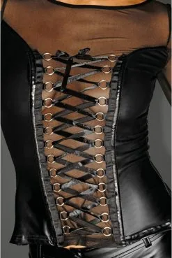 Un magnifique corsage au design très élaboré en tulle transparent et wetlook.