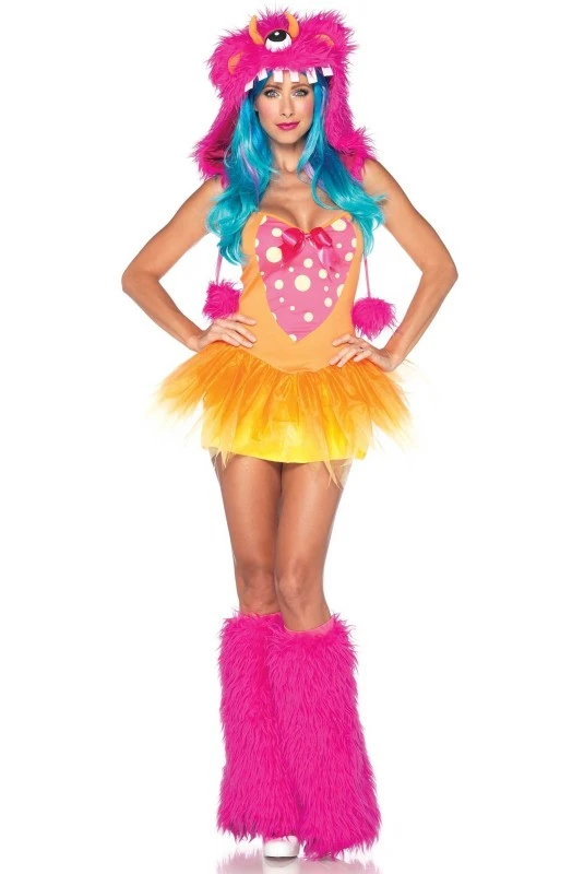 Robe tutu + chapeau fourrure cyclope avec pompon.