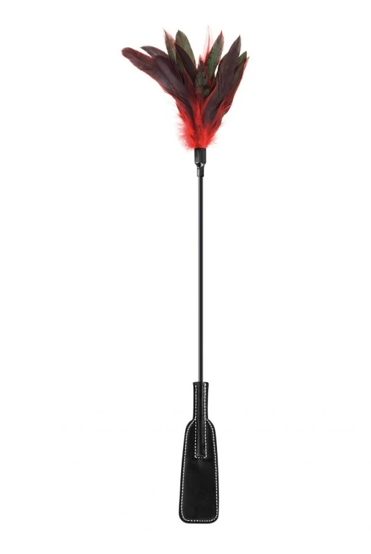 Cravache Noire Bdsm Plumes Noires et Rouges