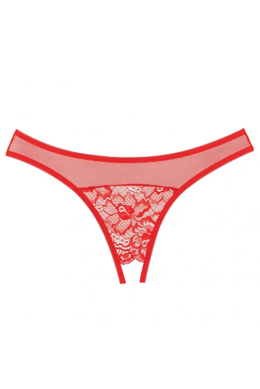 Culotte Ouverte Rouge Dentelle et Résille