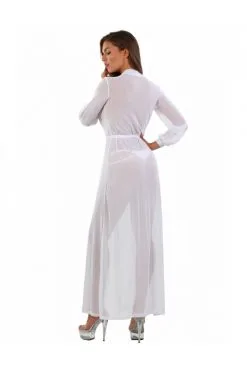 Déshabillé long Transparent Blanc Micro Résille