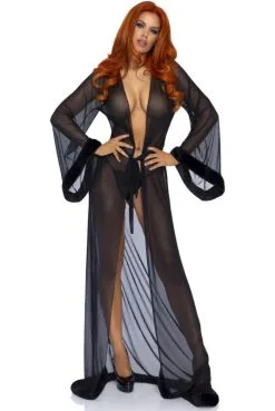 Déshabillé Peignoir Transparent et Fausse Fourrure Sexy Chic Noir