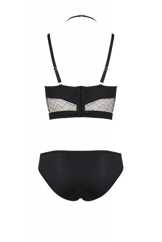 Ensemble de dessous féminins moderne et sophistiqué, comprenant une culotte et un soutien-gorge bustier à armatures.