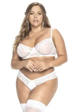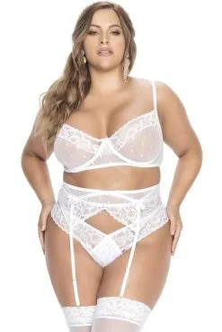 Ensemble 3 Pièces Grande Fine Résille Dentelle Blanche