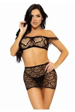 Ensemble 3 Pièces Résille Cœur Noir