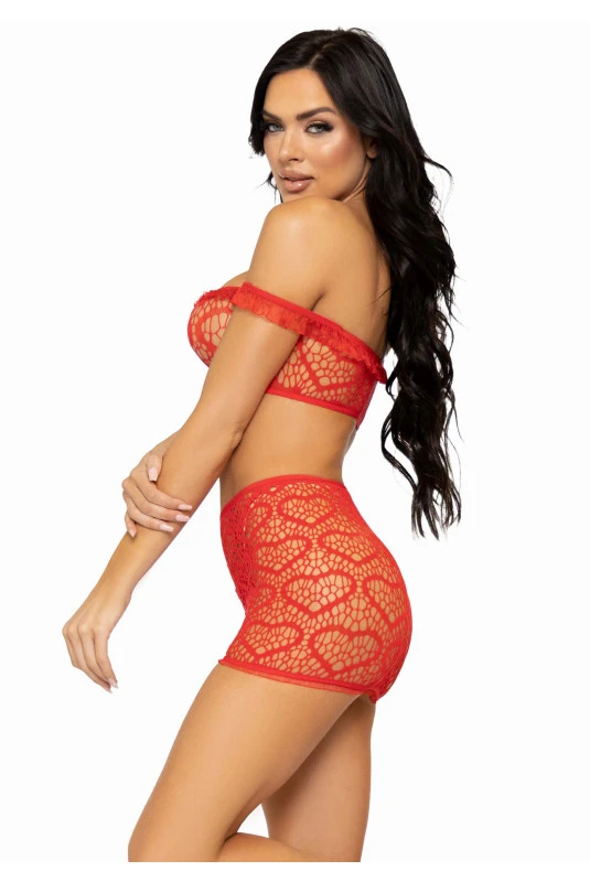 Body String Rouge Echancré Dentelle Et Sa Jupe Maille Transparente Amovible Grande Taille