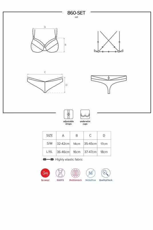 Ensemble Ouvert Fetish Soutien Gorge Et Culotte Harnais Noir