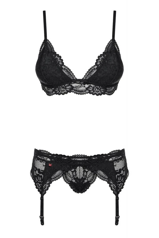 Ensemble Classique Portes Jarretelles Dentelle Noir 3 Pièces