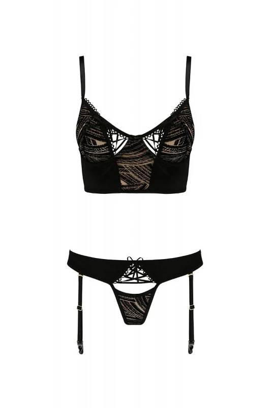 Ensemble de dessous féminins comprenant une culotte à jarretelles et un soutien-gorge bustier.