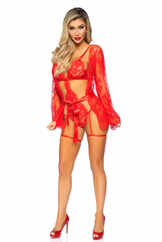 Ensemble Déshabillé Body String Jarretelles Rouge