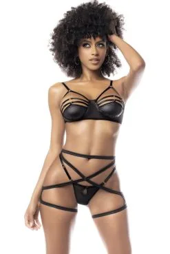 Ensemble lingerie sexy, composé de trois pièces lingerie effets mouillés.