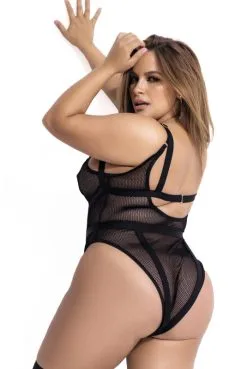 Ensemble Fetish Body Résille et Harnais Noir Grande Taille