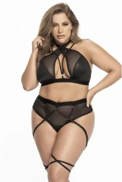 Ensemble Fetish Résille Noire Transparente Grande Taille 2 Pièces