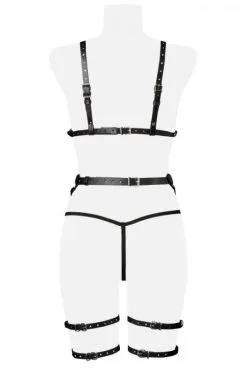 3 pièces : 1 soutien-gorge harnais, 1 string, 1 ceinture harnais à jarretières.
