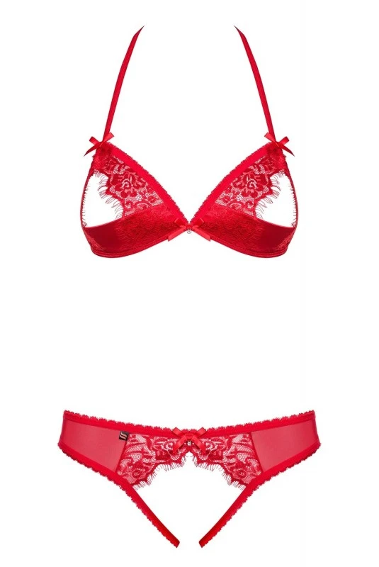 Ensemble Ouvert Fetish Soutien Gorge Et Culotte Harnais Noir