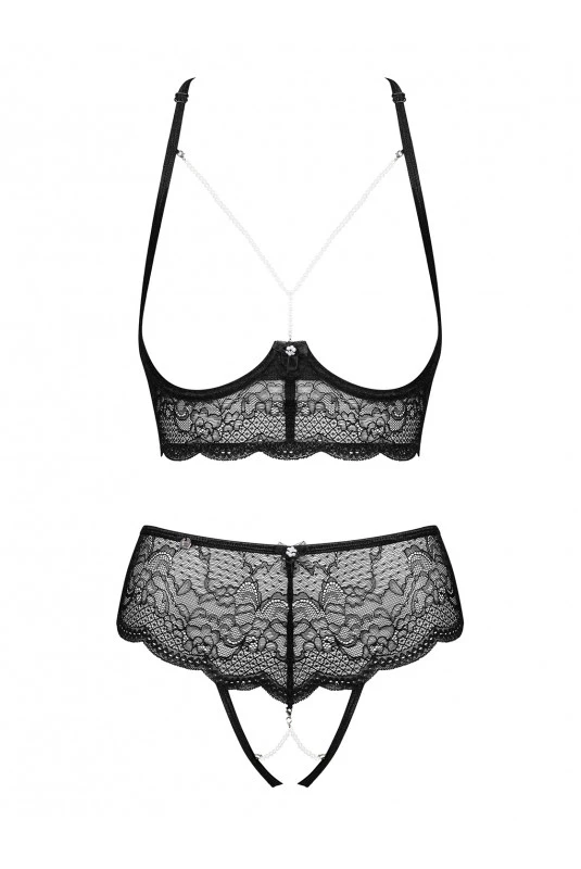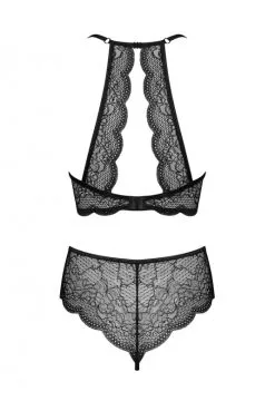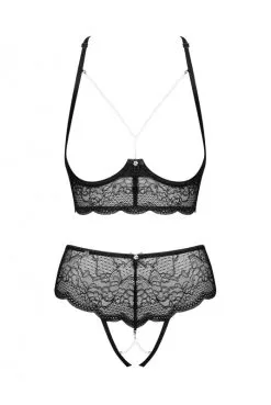 Ensemble Ouvert Fetish Soutien Gorge Et Culotte Harnais Noir