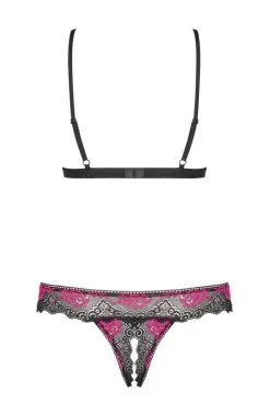 Ensemble Ouvert Seins Nus Tulia Noir Fuchsia