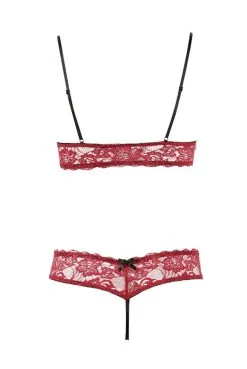 Ensemble Ouvert Soutien Gorge String Dentelle Rouge