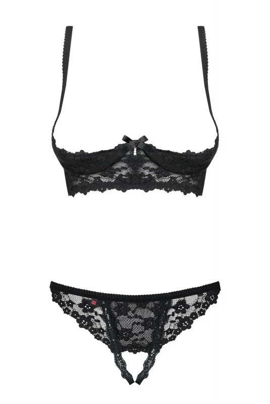 Ensemble Ouvert Fetish Soutien Gorge Et Culotte Harnais Noir