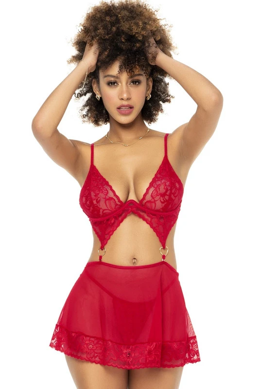 Body String Rouge Echancré Dentelle Et Sa Jupe Maille Transparente Amovible Grande Taille