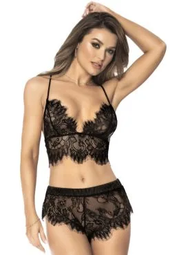 Ensemble Sexy Chic Dentelle Noire Boléro et Shorty