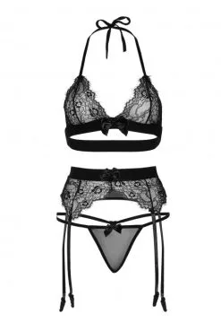Ensemble Sexy Chic Soutien Gorge Dentelle Ă cils Porte Jarretelles et String