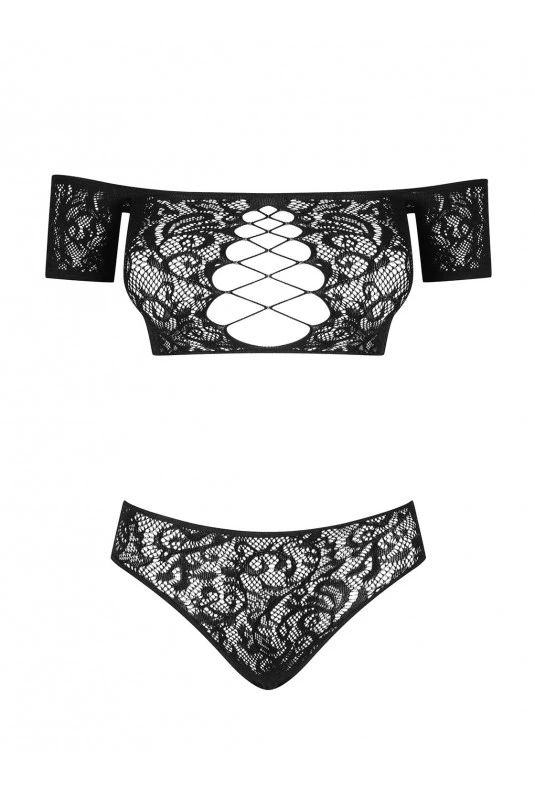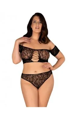 Ensemble Ouvert Fetish Soutien Gorge Et Culotte Harnais Noir