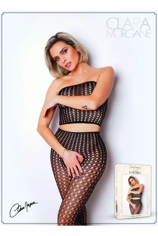Ensemble Sexy Maille Ajourée Top Bandeau Collant Ouvert
