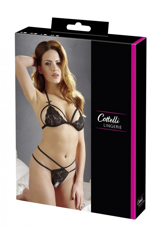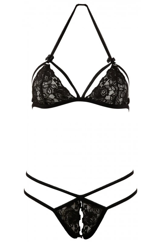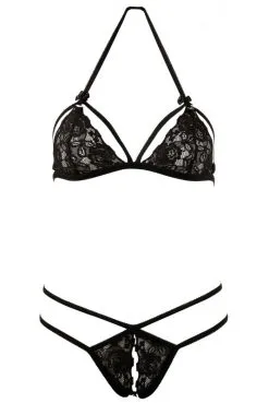 Ensemble Ouvert Fetish Soutien Gorge Et Culotte Harnais Noir