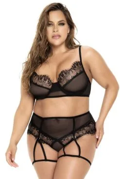 Ensemble Sexy Soutien Gorge et Culotte à Jarretières Attachées Grande Taille