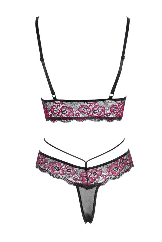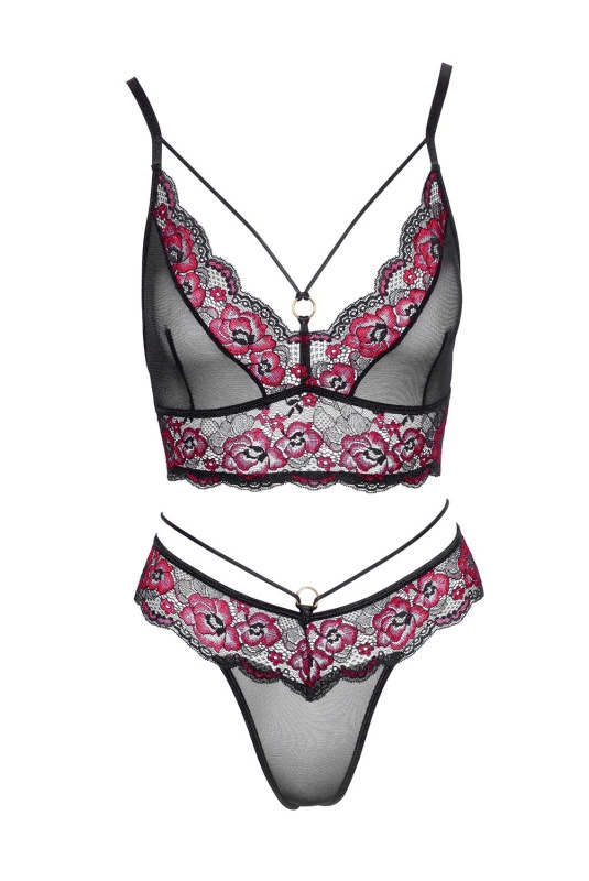 Ensemble soutien-gorge et string en dentelle et résille bicolore