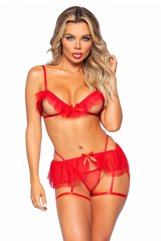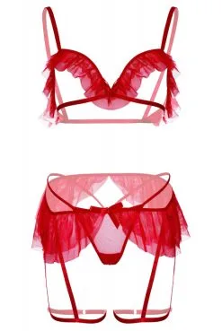 Body String Rouge Echancré Dentelle Et Sa Jupe Maille Transparente Amovible Grande Taille