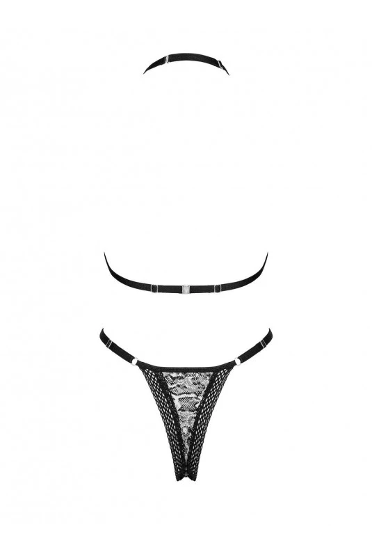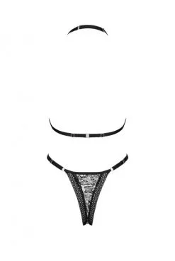 Ensemble Ouvert Fetish Soutien Gorge Et Culotte Harnais Noir