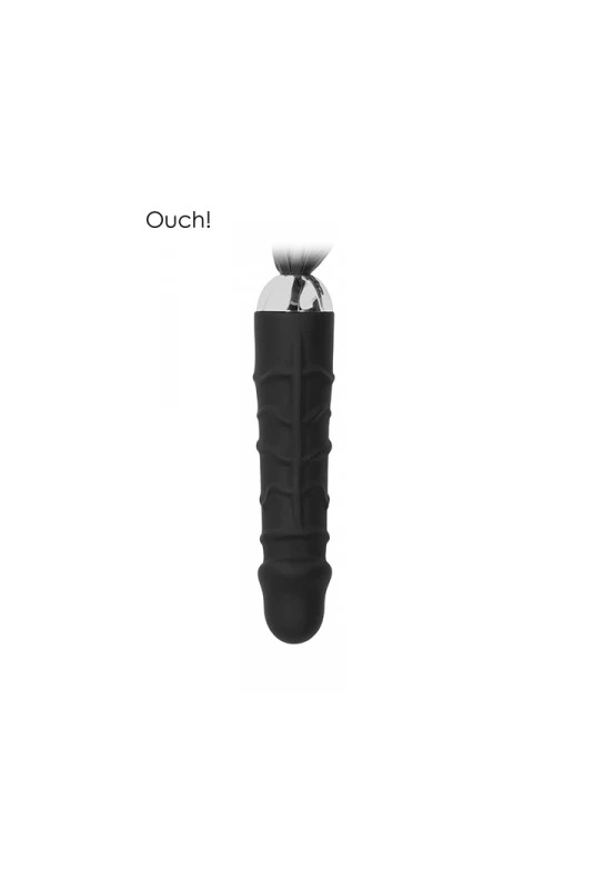 Un superbe accessoire d’inspiration BDSM offrant d’un côté un martinet et de l’autre un godemiché réaliste noir.